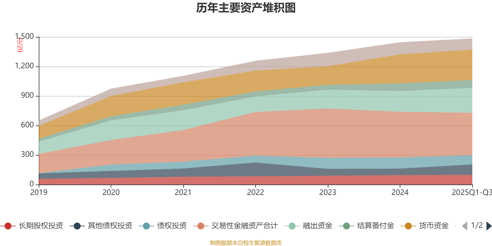 资产重大变化方面,截至2025年三季度末,公司交易性金融资产合计较上年末减少7.34%,占公司总资产比重下降3.12个百分点;其他债权投资较上年末增加59.8%,占公司总资产比重上升2.54个百分点;融出资金较上年末增加20.2%,占公司总资产比重上升2.5个百分点;买入返售金融资产较上年末减少56.04%,占公司总资产比重下降2.08个百分点。
