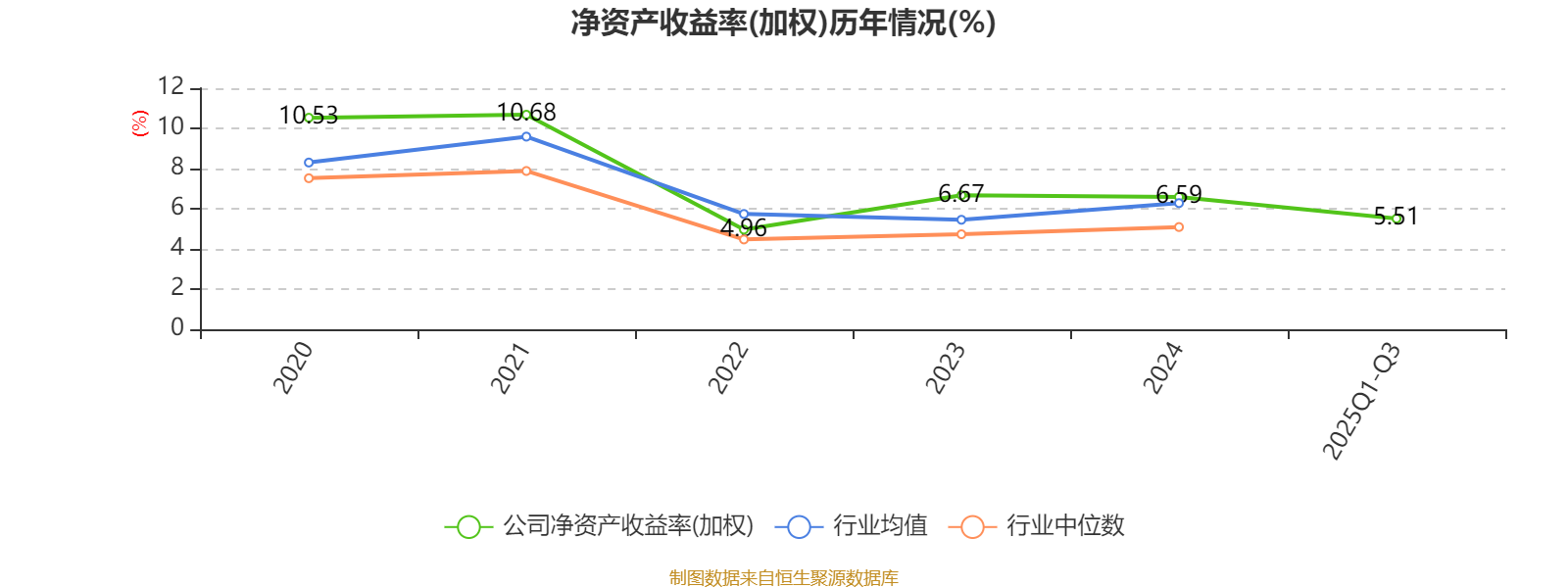 盈利能力方面, 2025年前三季度公司加权平均净资产收益率为5.51%,同比上升1.32个百分点。