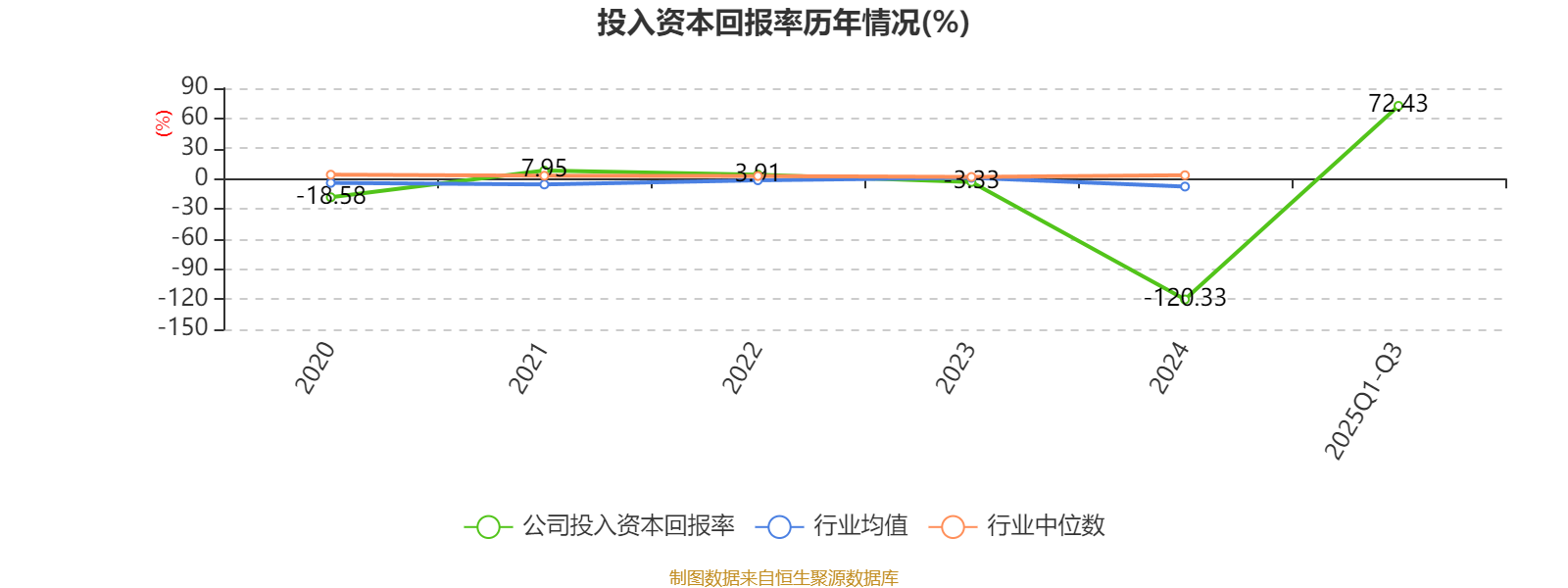 公司2025年前三季度投入资本回报率为72.43%,较上年同期上升74.71个百分点。
