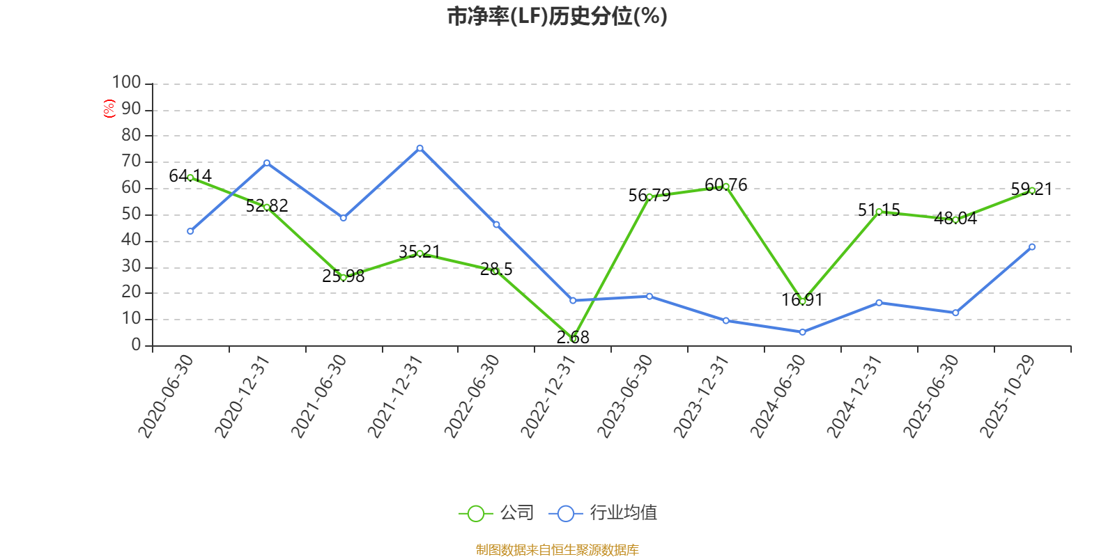 市盈率、市净率为负时,不显示当期分位数,会导致折线图中断。