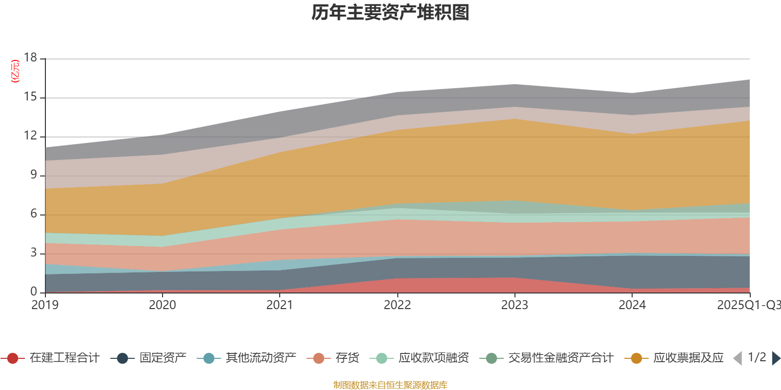 资产重大变化方面,截至2025年三季度末,公司交易性金融资产合计较上年末增加292.82%,占公司总资产比重上升3.17个百分点;货币资金较上年末减少26.2%,占公司总资产比重下降2.9个百分点;应收款项融资较上年末减少45.86%,占公司总资产比重下降2.21个百分点;预付款项较上年末增加274.5%,占公司总资产比重上升1.9个百分点。