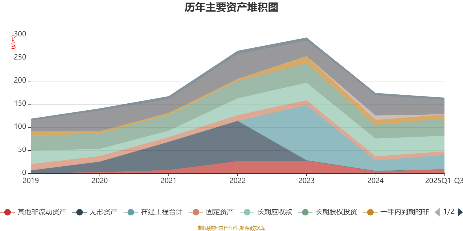 资产重大变化方面,截至2025年三季度末,公司在建工程合计较上年末增加38.63%,占公司总资产比重上升6.1个百分点;长期股权投资较上年末增加27.5%,占公司总资产比重上升6.01个百分点;货币资金较上年末减少28.17%,占公司总资产比重下降5.98个百分点;其他应收款(含利息和股利)较上年末减少94.52%,占公司总资产比重下降5.25个百分点。