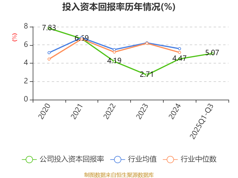 盈利能力方面, 2025年前三季度公司加权平均净资产收益率为8.31%,同比上升0.81个百分点。公司2025年前三季度投入资本回报率为5.07%,较上年同期上升1.75个百分点。