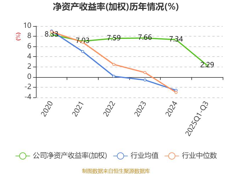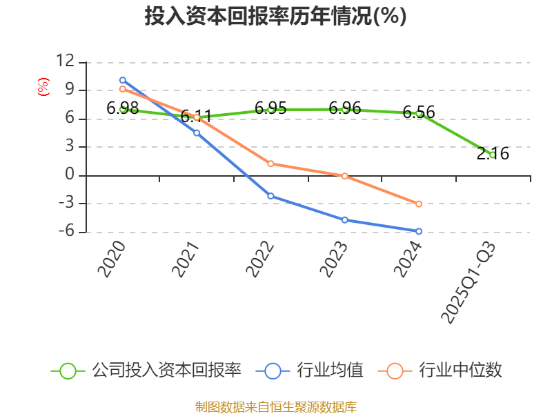 盈利能力方面, 2025年前三季度公司加权平均净资产收益率为2.29%,同比下降0.11个百分点。公司2025年前三季度投入资本回报率为2.16%,较上年同期上升0.33个百分点。