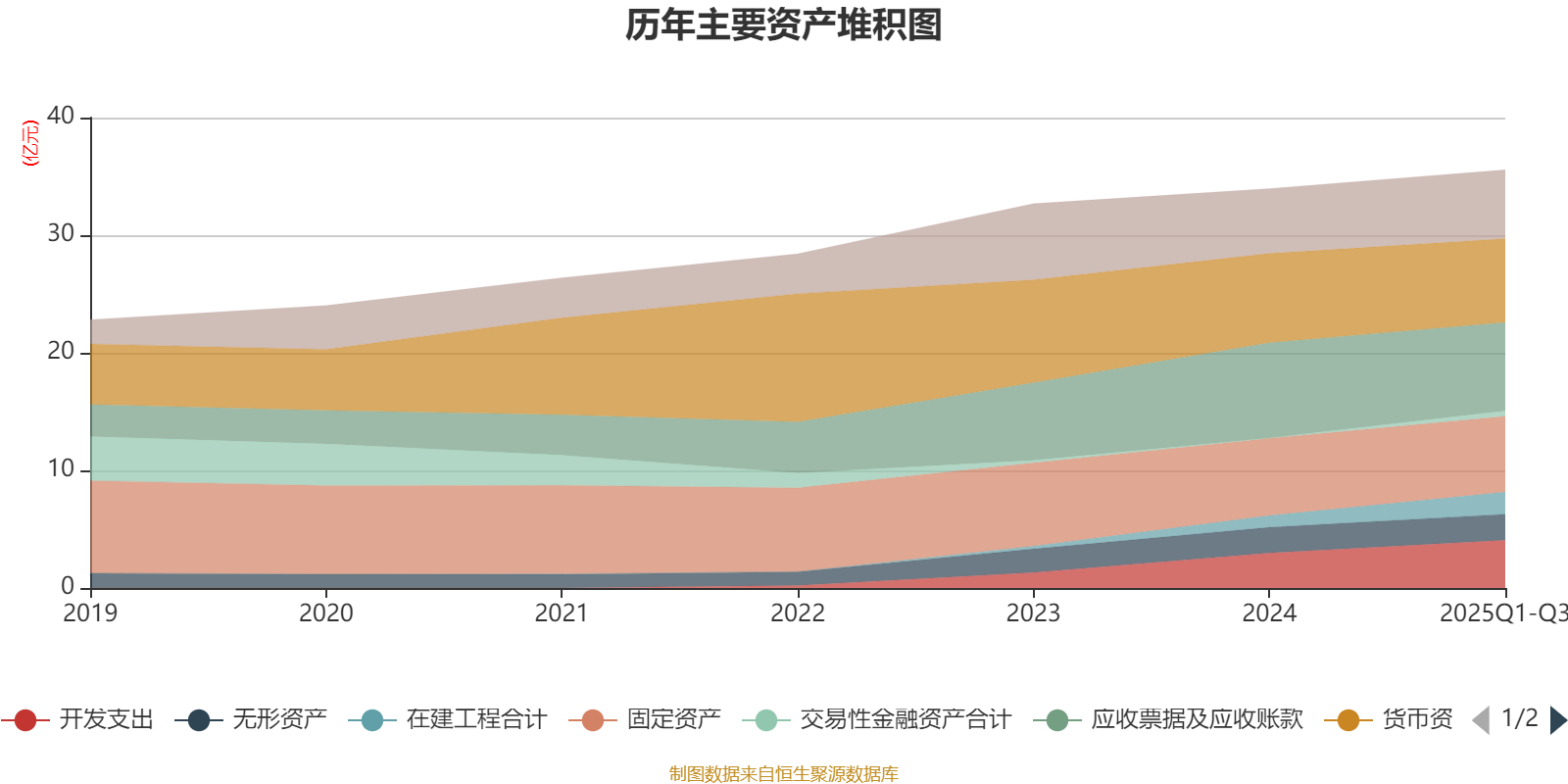 资产重大变化方面,截至2025年三季度末,公司应收票据及应收账款较上年末减少7.2%,占公司总资产比重下降2.72个百分点;开发支出较上年末增加36.59%,占公司总资产比重上升2.67个百分点;货币资金较上年末减少6.22%,占公司总资产比重下降2.34个百分点;在建工程合计较上年末增加85.83%,占公司总资产比重上升2.31个百分点。