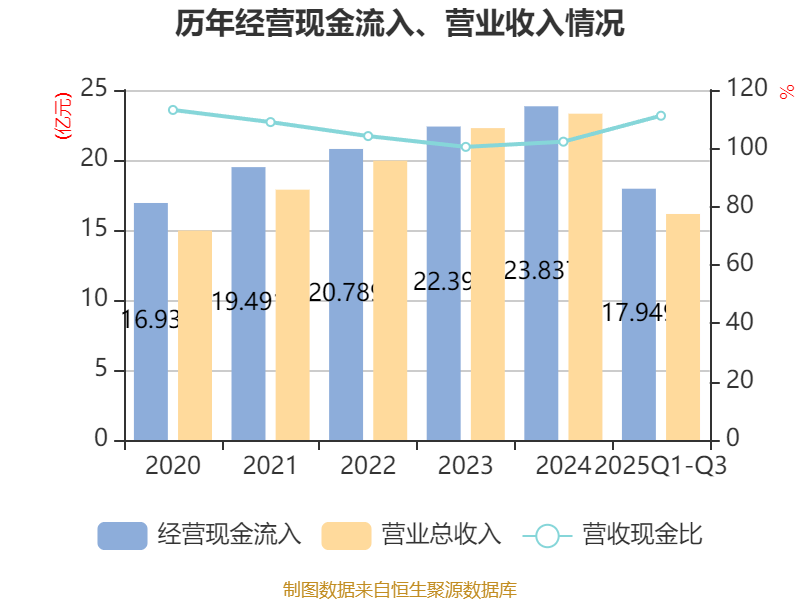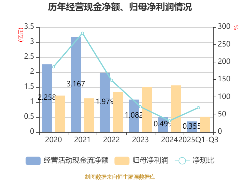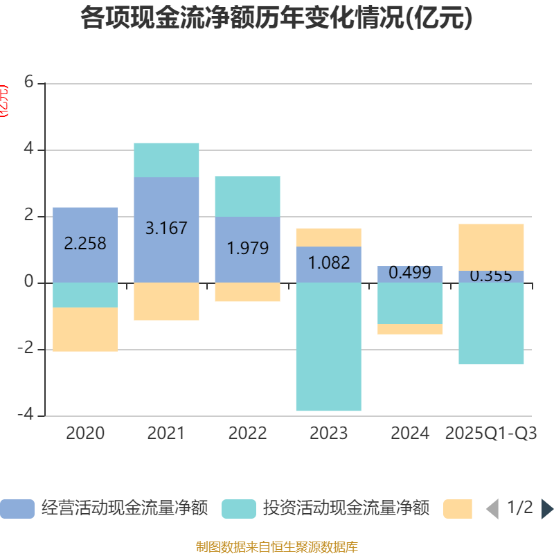 2025年前三季度,公司经营活动现金流净额为3552.89万元,同比增加2.35亿元;筹资活动现金流净额1.4亿元,同比增加1.51亿元;投资活动现金流净额-2.46亿元,上年同期为-8663万元。