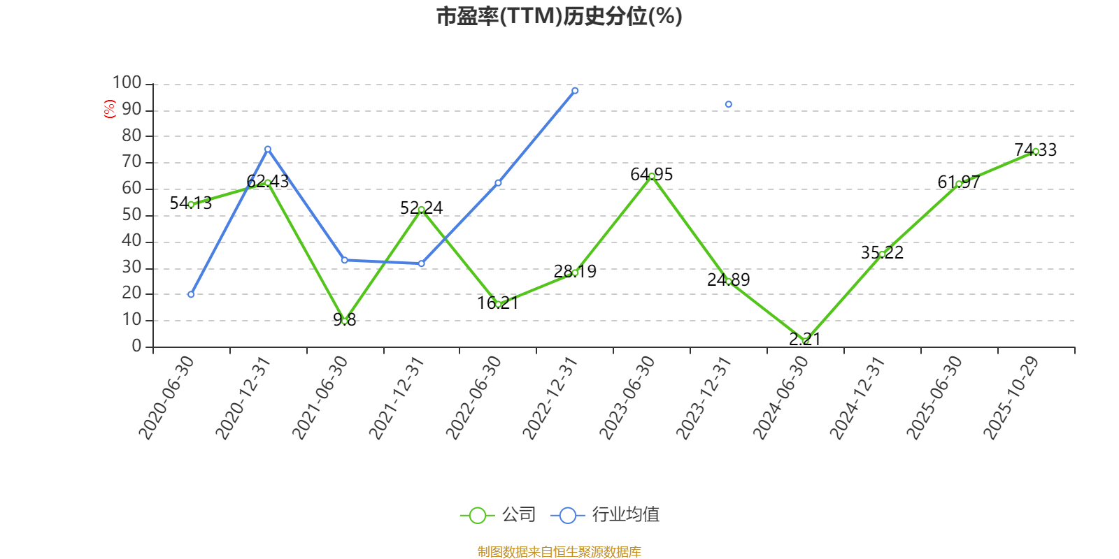 市盈率、市净率为负时,不显示当期分位数,会导致折线图中断。
