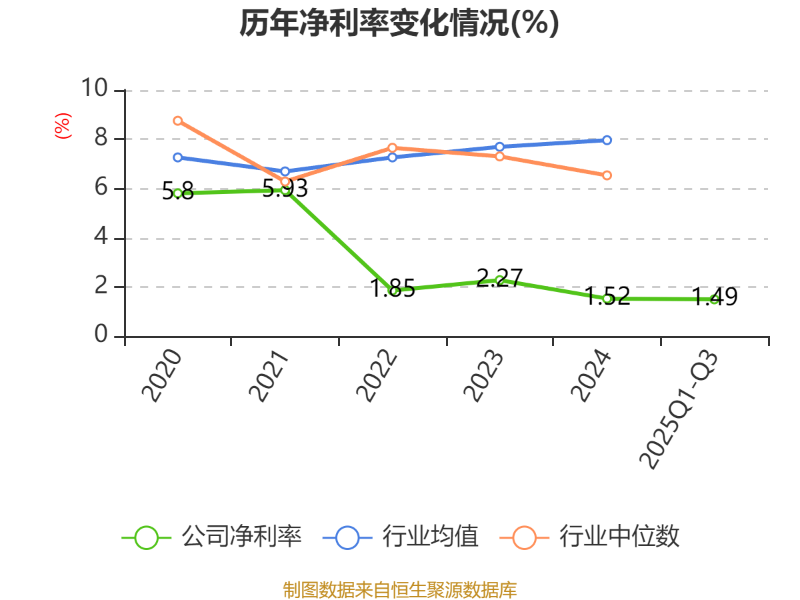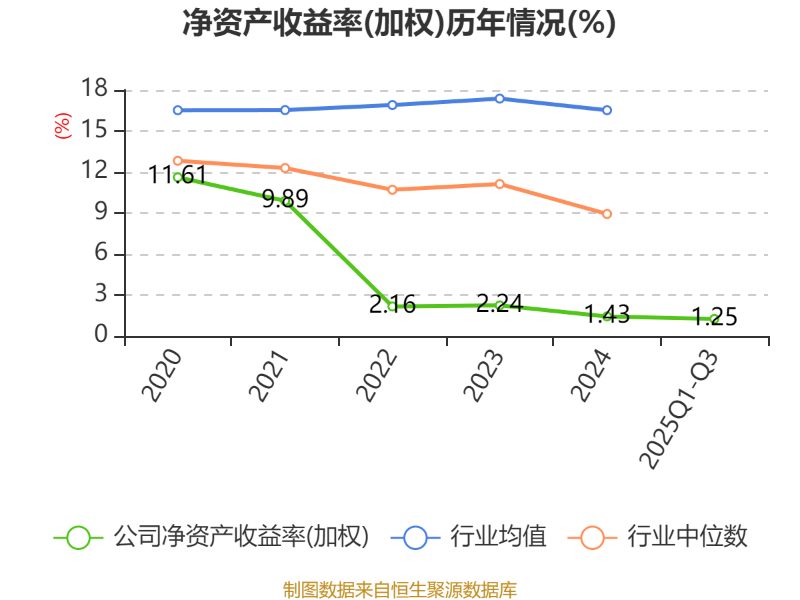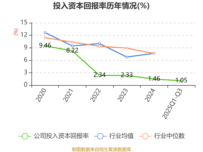 盈利能力方面, 2025年前三季度公司加权平均净资产收益率为1.25%,同比上升0.12个百分点。公司2025年前三季度投入资本回报率为1.05%,较上年同期下降0.04个百分点。