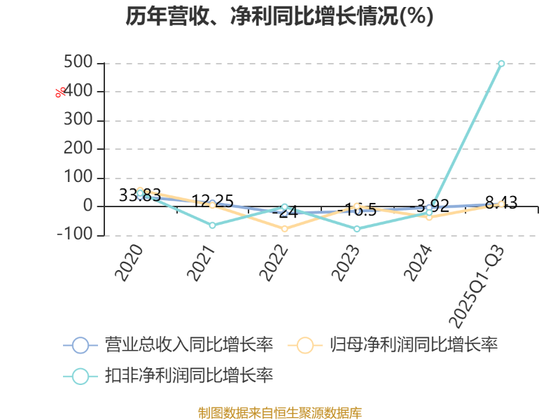 资产重大变化方面,截至2025年三季度末,公司其他流动资产较上年末减少46.76%,占公司总资产比重下降6.61个百分点;投资性房地产较上年末增加604.01%,占公司总资产比重上升5.82个百分点;固定资产较上年末减少15.47%,占公司总资产比重下降3.72个百分点;应收票据及应收账款较上年末增加31.91%,占公司总资产比重上升3.37个百分点。