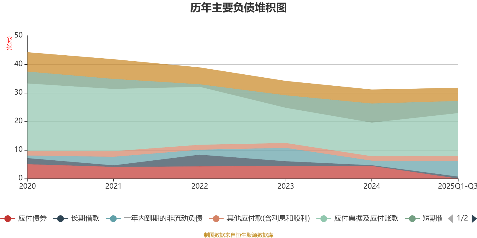 负债重大变化方面,截至2025年三季度末,公司应付债券较上年末减少100%,占公司总资产比重下降5.79个百分点;一年内到期的非流动负债较上年末增加242.45%,占公司总资产比重上升5.06个百分点;应付票据及应付账款较上年末增加27.11%,占公司总资产比重上升4.13个百分点;短期借款较上年末减少36.54%,占公司总资产比重下降3.25个百分点。