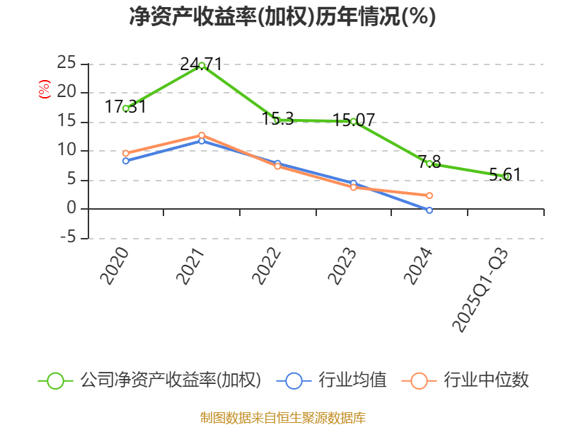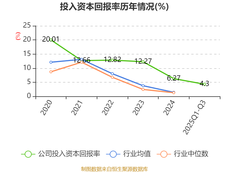 盈利能力方面, 2025年前三季度公司加权平均净资产收益率为5.61%,同比下降0.9个百分点。公司2025年前三季度投入资本回报率为4.3%,较上年同期下降1.15个百分点。