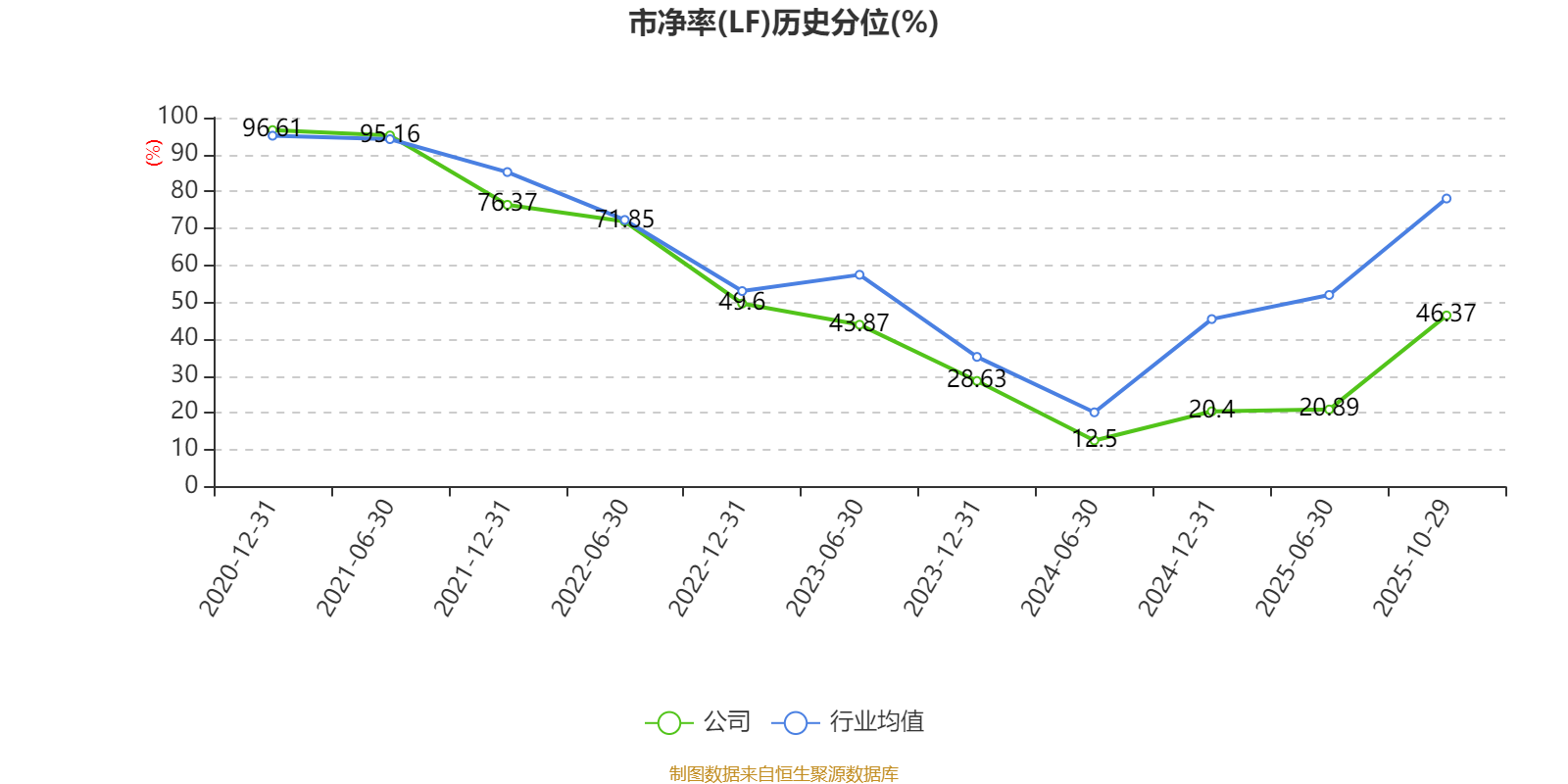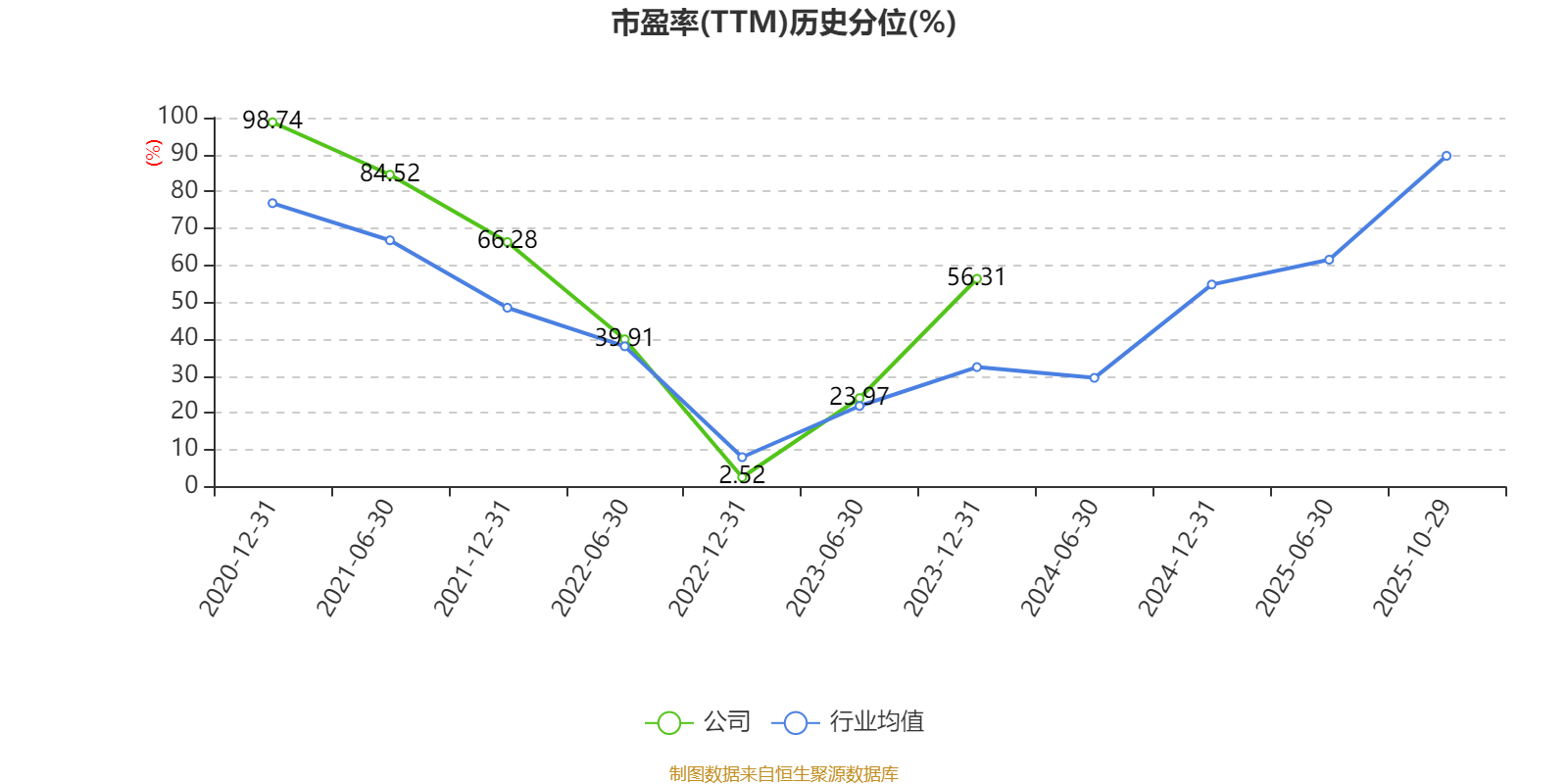 市盈率、市净率为负时,不显示当期分位数,会导致折线图中断。
