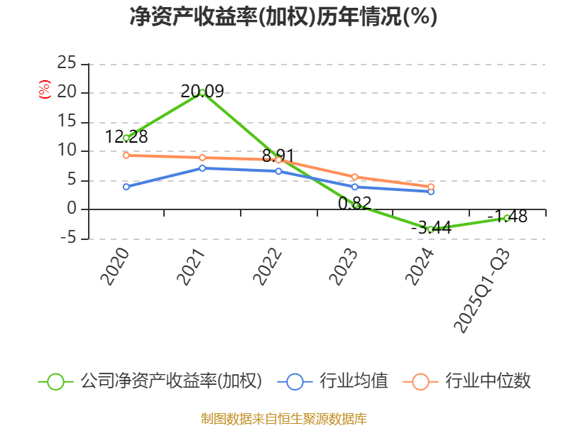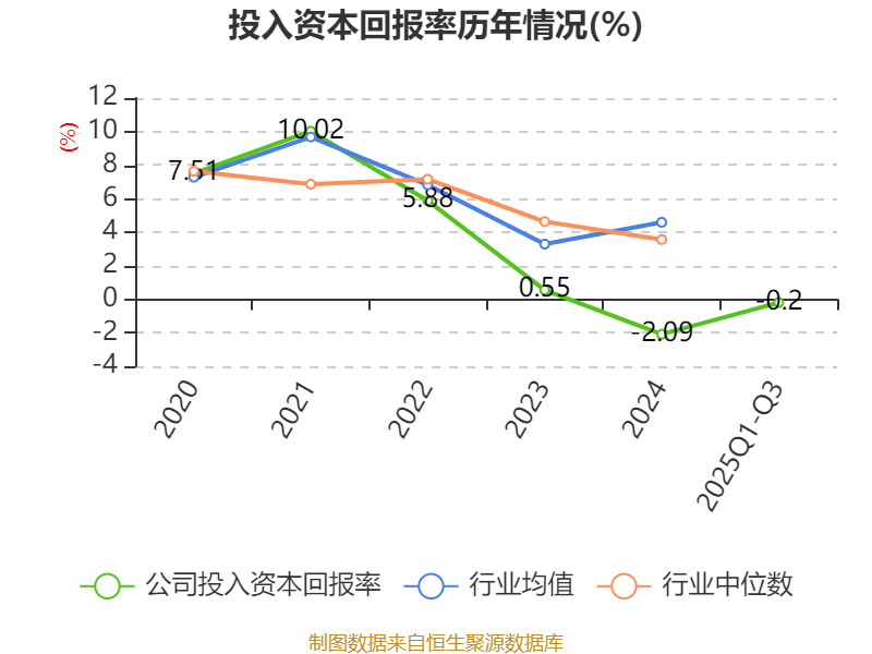 盈利能力方面, 2025年前三季度公司加权平均净资产收益率为-1.48%,同比下降0.79个百分点。公司2025年前三季度投入资本回报率为-0.2%,较上年同期上升0.07个百分点。
