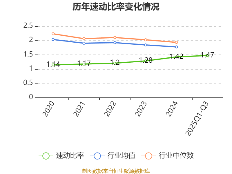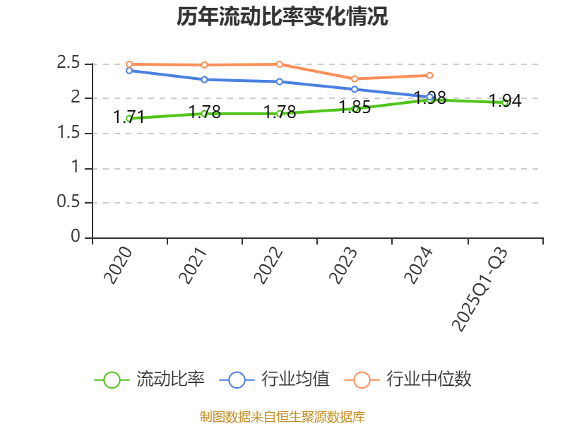 2025年前三季度,公司流动比率为1.94,速动比率为1.47。