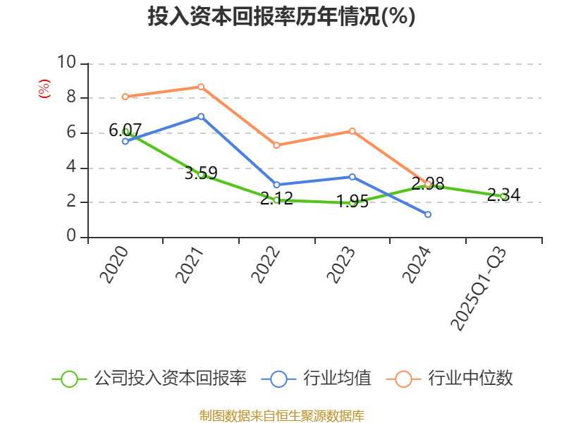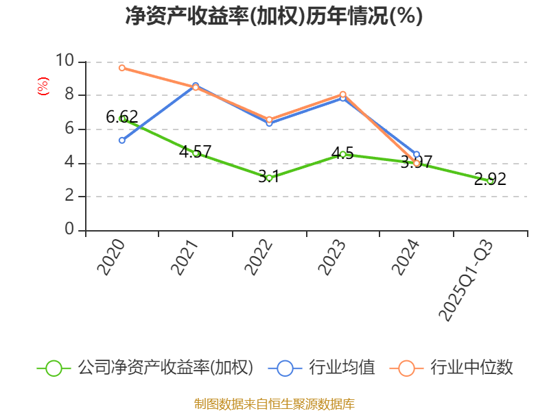 盈利能力方面, 2025年前三季度公司加权平均净资产收益率为2.92%,同比上升1.2个百分点。公司2025年前三季度投入资本回报率为2.34%,较上年同期上升1.16个百分点。