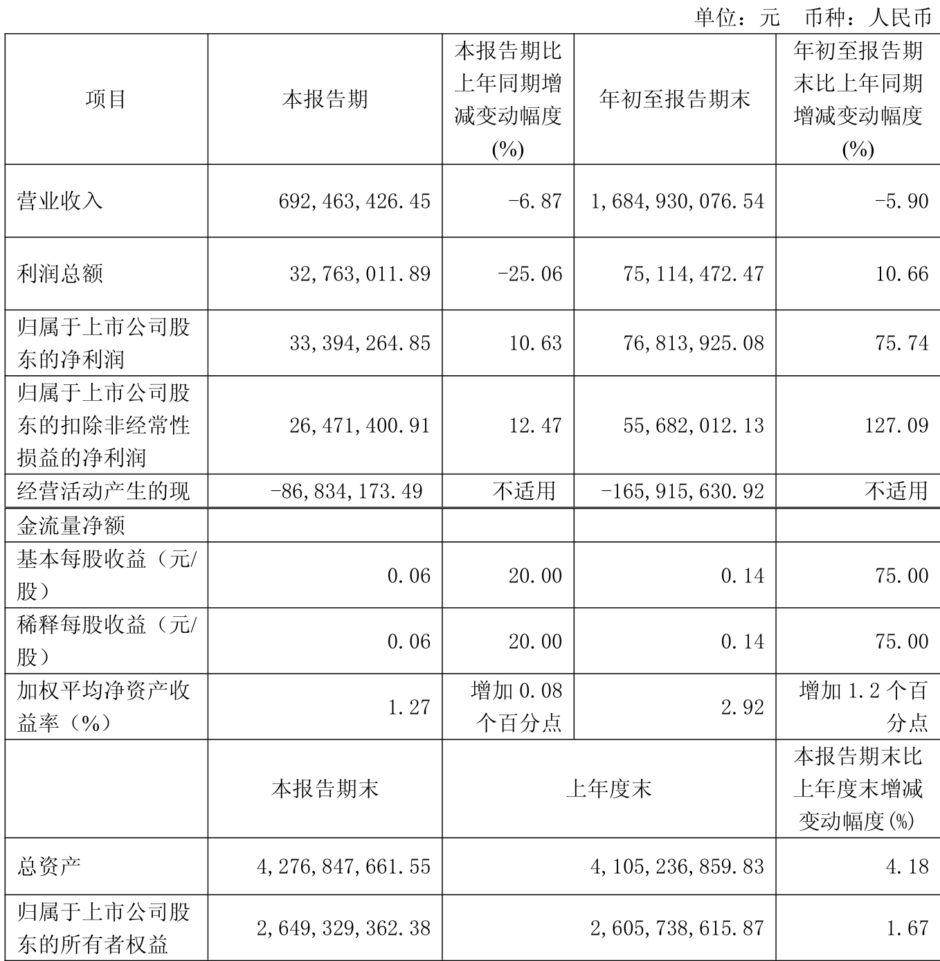 中证智能财讯出版传媒(601999)10月30日披露2025年第三季度报告。前三季度公司实现营业总收入16.85亿元,同比下降5.90%;归母净利润7681.39万元,同比增长75.74%;扣非净利润5568.2万元,同比增长127.09%;经营活动产生的现金流量净额为-1.66亿元,上年同期为-1.84亿元;报告期内,出版传媒基本每股收益为0.14元,加权平均净资产收益率为2.92%。