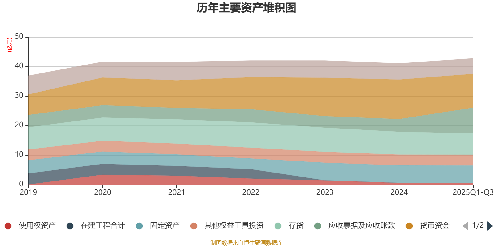 资产重大变化方面,截至2025年三季度末,公司应收票据及应收账款较上年末增加101.31%,占公司总资产比重上升9.81个百分点;货币资金较上年末减少14.08%,占公司总资产比重下降5.7个百分点;存货较上年末减少6.56%,占公司总资产比重下降1.94个百分点;固定资产较上年末减少0.45%,占公司总资产比重下降0.64个百分点。