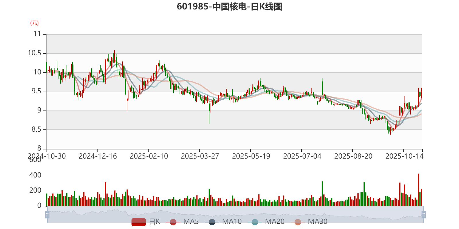 中证智能财讯中国核电(601985)10月30日披露2025年第三季度报告。前三季度公司实现营业总收入616.35亿元,同比增长8.16%;归母净利润80.02亿元,同比下降10.42%;扣非净利润79.58亿元,同比下降10.24%;经营活动产生的现金流量净额为302.66亿元,同比下降7.85%;报告期内,中国核电基本每股收益为0.389元,加权平均净资产收益率为7.11%。