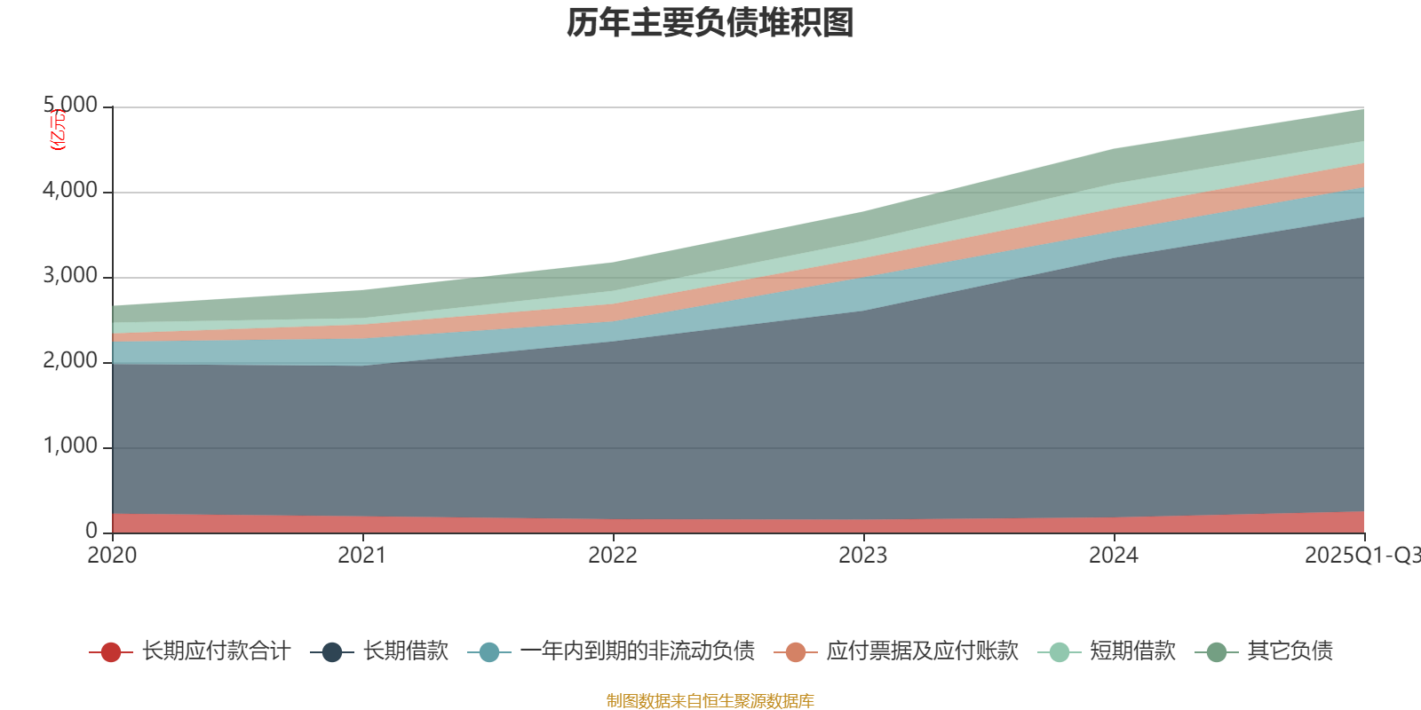负债重大变化方面,截至2025年三季度末,公司长期借款较上年末增加13.49%,占公司总资产比重上升1.79个百分点;短期借款较上年末减少11.73%,占公司总资产比重下降0.85个百分点;长期应付款合计较上年末增加38.93%,占公司总资产比重上升0.73个百分点;应交税费较上年末减少33.93%,占公司总资产比重下降0.42个百分点。