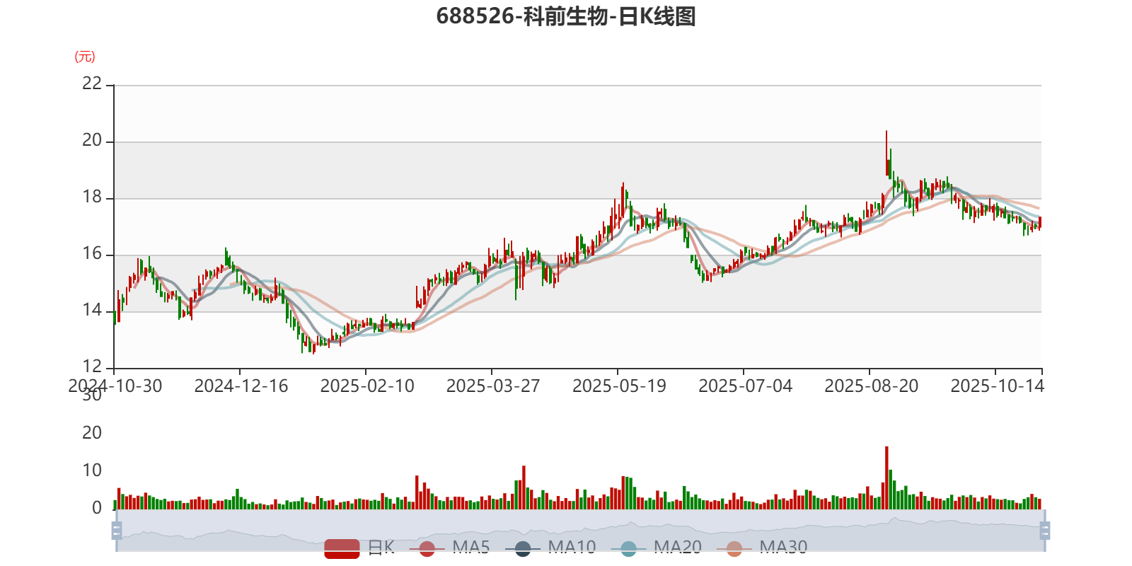 以10月29日收盘价计算,科前生物目前市盈率(TTM)约为17.57倍,市净率(LF)约1.94倍,市销率(TTM)约7.96倍。