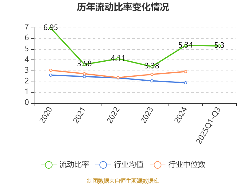 2025年前三季度,公司流动比率为5.3,速动比率为5.02。