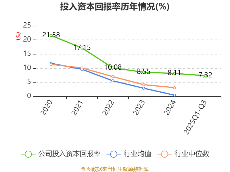 盈利能力方面, 2025年前三季度公司加权平均净资产收益率为8.26%,同比上升1.51个百分点。公司2025年前三季度投入资本回报率为7.32%,较上年同期上升1.87个百分点。