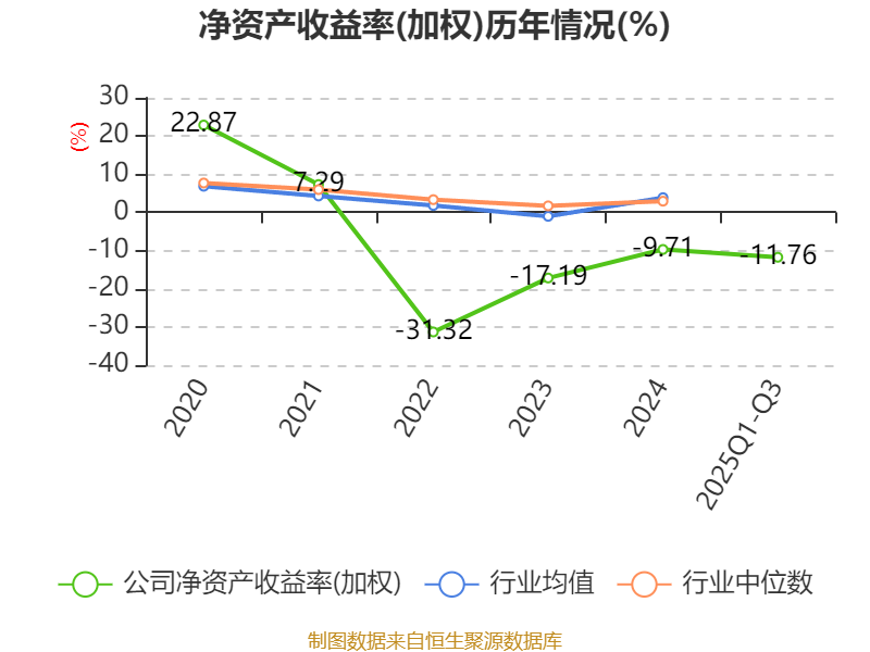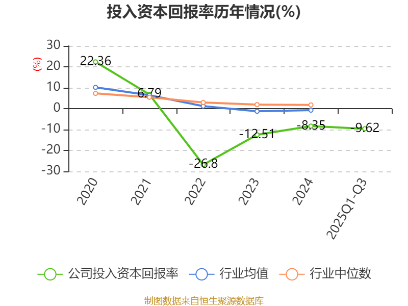 盈利能力方面, 2025年前三季度公司加权平均净资产收益率为-11.76%,同比上升3.74个百分点。公司2025年前三季度投入资本回报率为-9.62%,较上年同期上升3.3个百分点。