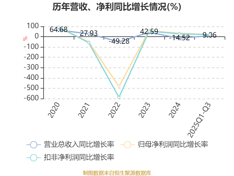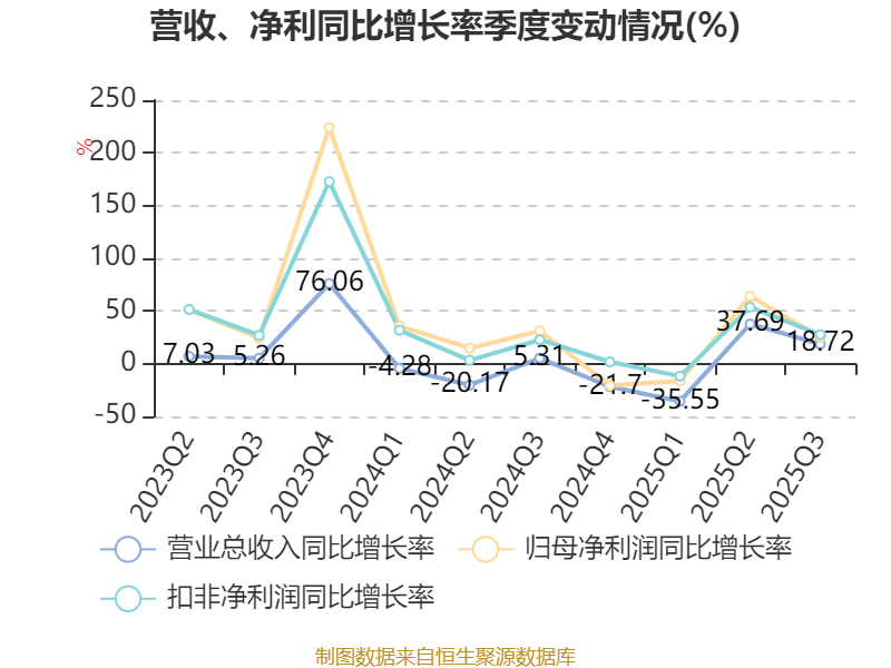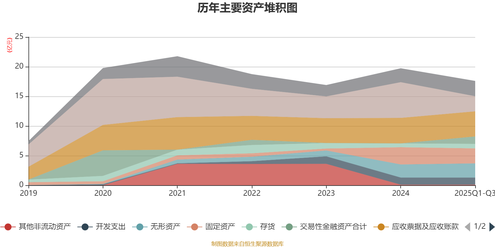 资产重大变化方面,截至2025年三季度末,公司货币资金较上年末减少57.8%,占公司总资产比重下降16.1个百分点;交易性金融资产合计占公司总资产的7.11%,上年末为0;无形资产较上年末增加8.4%,占公司总资产比重上升2.41个百分点;应收票据及应收账款较上年末减少1.16%,占公司总资产比重上升2.36个百分点。