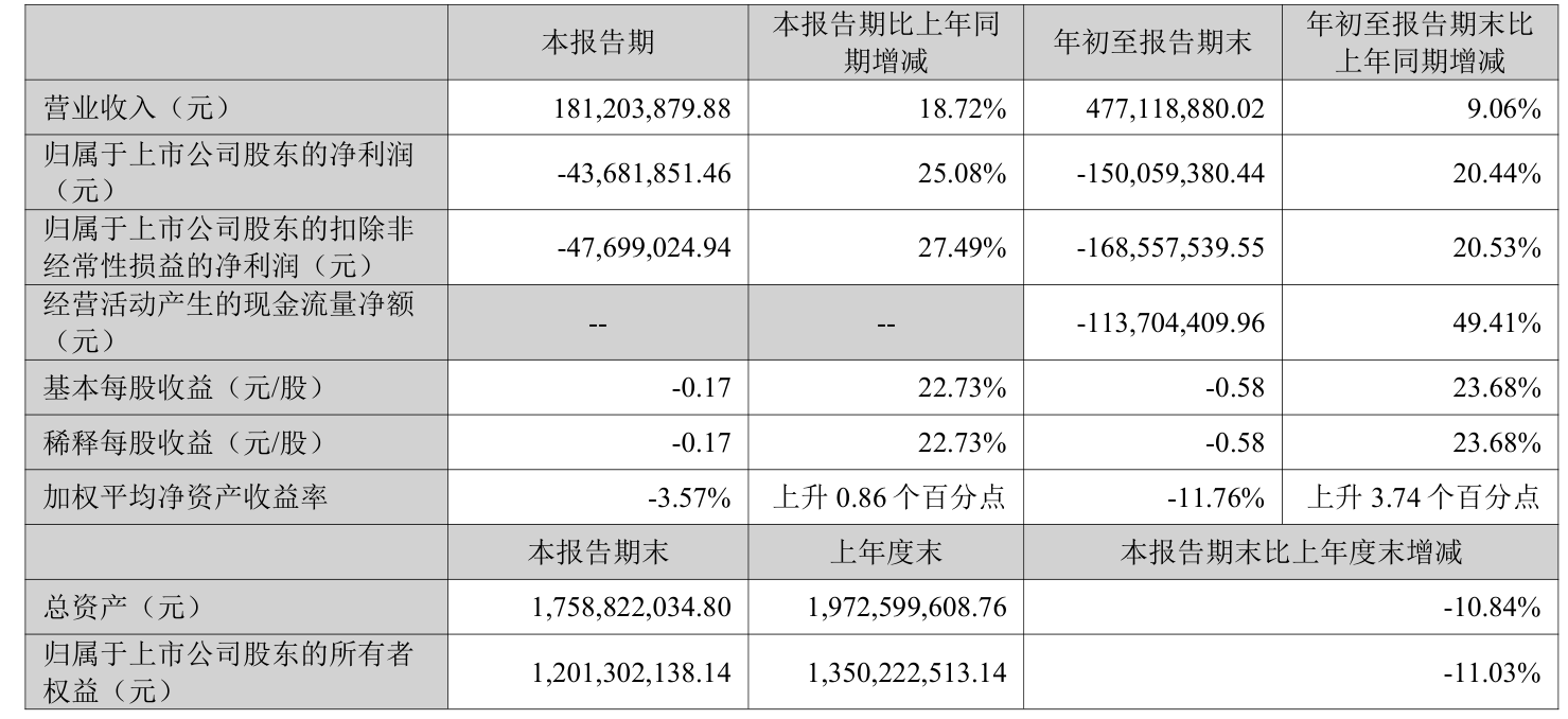 中证智能财讯中孚信息(300659)10月30日披露2025年第三季度报告。前三季度公司实现营业总收入4.77亿元,同比增长9.06%;归母净利润亏损1.5亿元,上年同期亏损1.89亿元;扣非净利润亏损1.69亿元,上年同期亏损2.12亿元;经营活动产生的现金流量净额为-1.14亿元,上年同期为-2.25亿元;报告期内,中孚信息基本每股收益为-0.58元,加权平均净资产收益率为-11.76%。