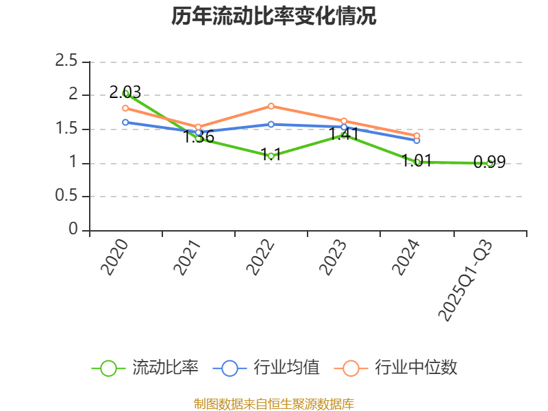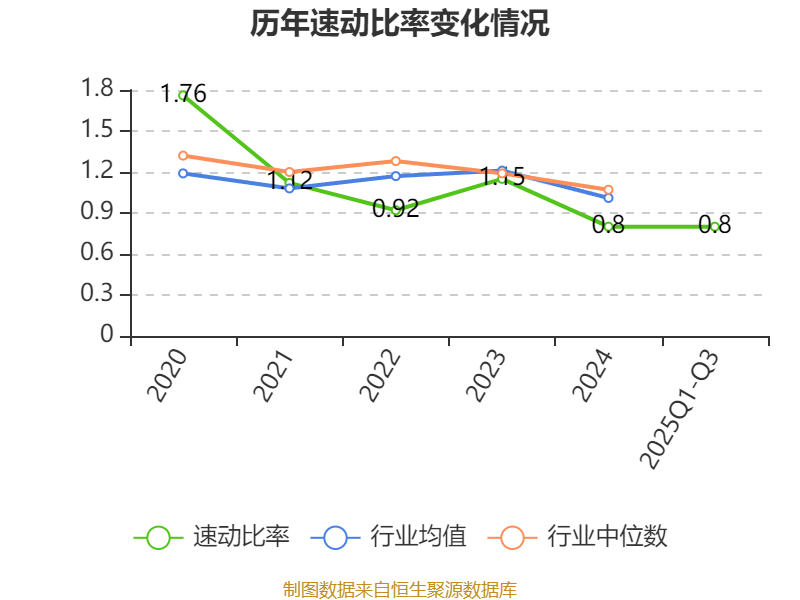 2025年前三季度,公司流动比率为0.99,速动比率为0.8。