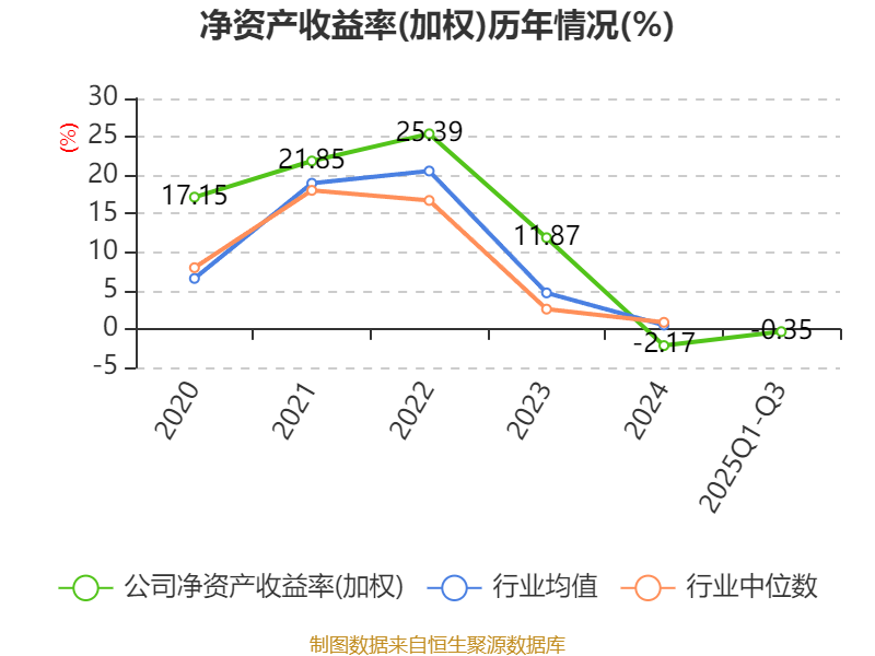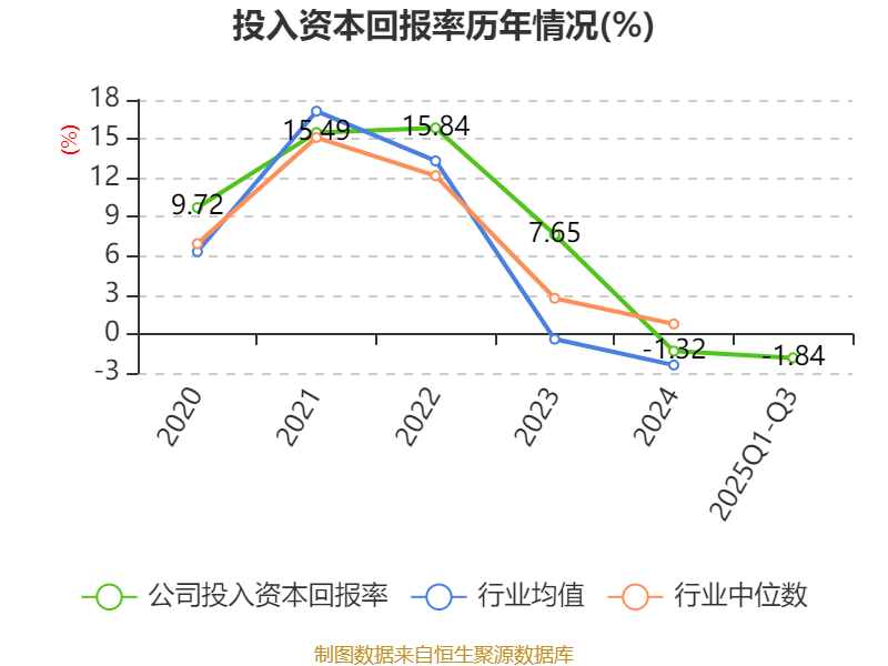 盈利能力方面, 2025年前三季度公司加权平均净资产收益率为-0.35%,同比下降2.09个百分点。公司2025年前三季度投入资本回报率为-1.84%,较上年同期下降3.28个百分点。