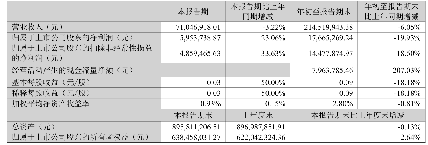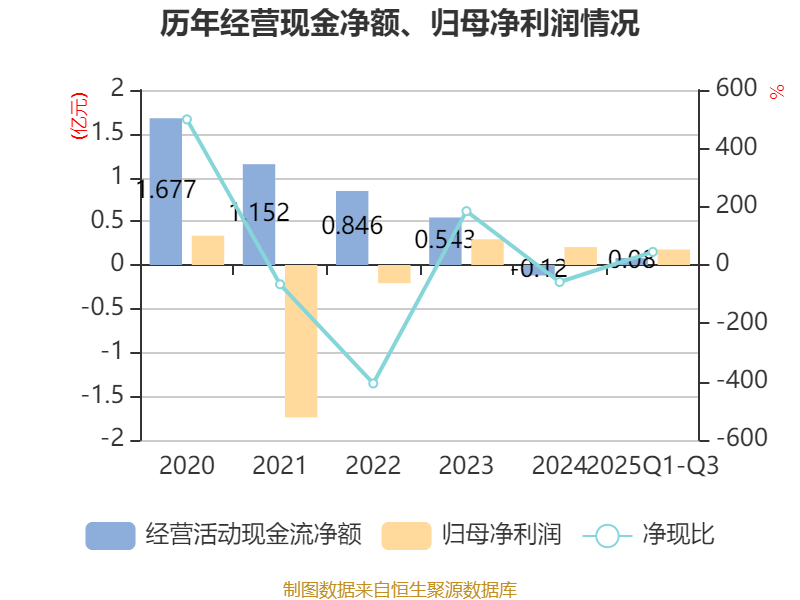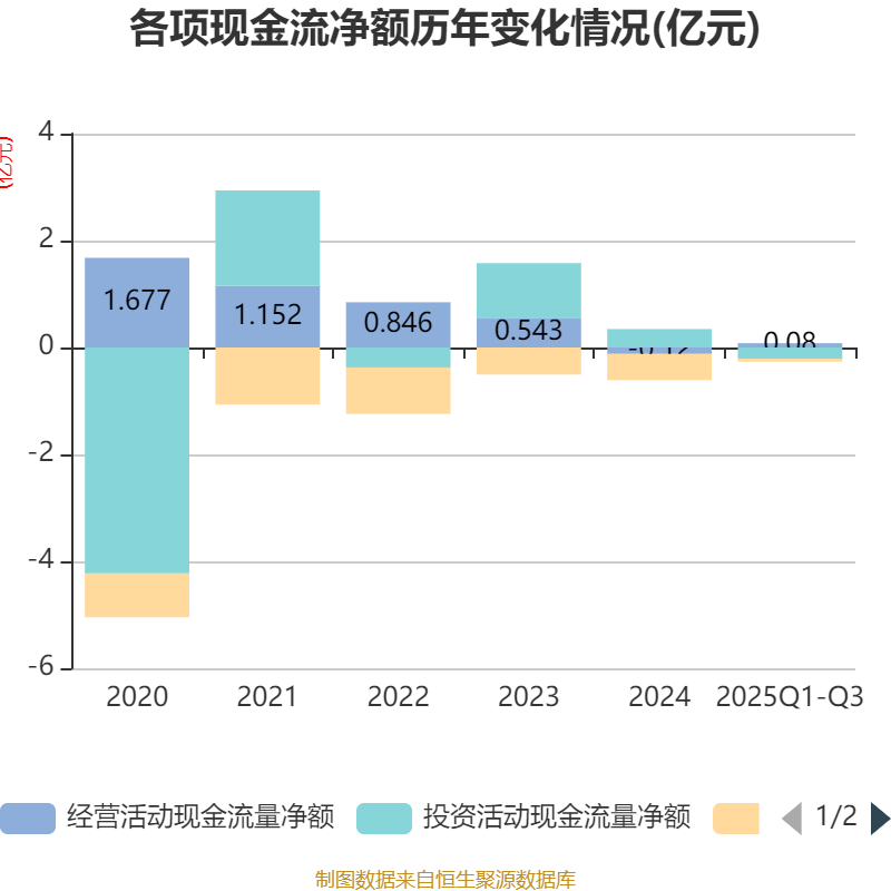 2025年前三季度,公司经营活动现金流净额为796.38万元,同比增加1540.45万元;筹资活动现金流净额-551.77万元,同比增加4270.68万元;投资活动现金流净额-2095.83万元,上年同期为3950.09万元。