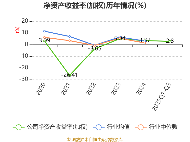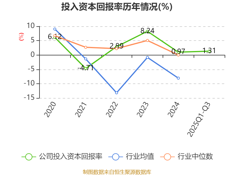 盈利能力方面, 2025年前三季度公司加权平均净资产收益率为2.8%,同比下降0.81个百分点。公司2025年前三季度投入资本回报率为1.31%,较上年同期下降0.94个百分点。