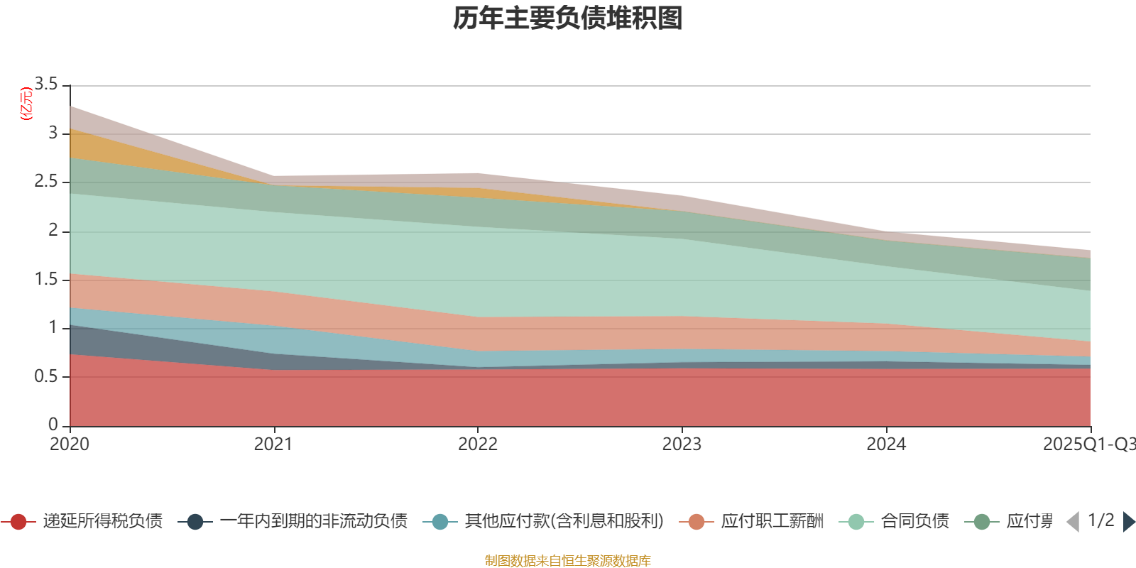 负债重大变化方面,截至2025年三季度末,公司应付职工薪酬较上年末减少44.57%,占公司总资产比重下降1.4个百分点;应付票据及应付账款较上年末增加26.73%,占公司总资产比重上升0.79个百分点;合同负债较上年末减少11.77%,占公司总资产比重下降0.77个百分点;一年内到期的非流动负债较上年末减少49.26%,占公司总资产比重下降0.42个百分点。