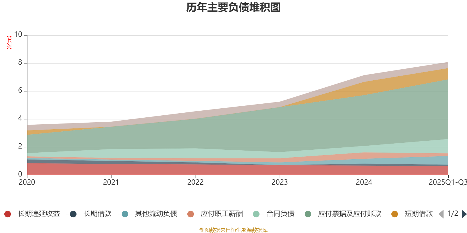 负债重大变化方面,截至2025年三季度末,公司合同负债较上年末增加124.1%,占公司总资产比重上升2.78个百分点;应付票据及应付账款较上年末增加17.5%,占公司总资产比重上升2.11个百分点;应付职工薪酬较上年末减少58.53%,占公司总资产比重下降1.54个百分点;其他流动负债较上年末增加78.27%,占公司总资产比重上升1.29个百分点。