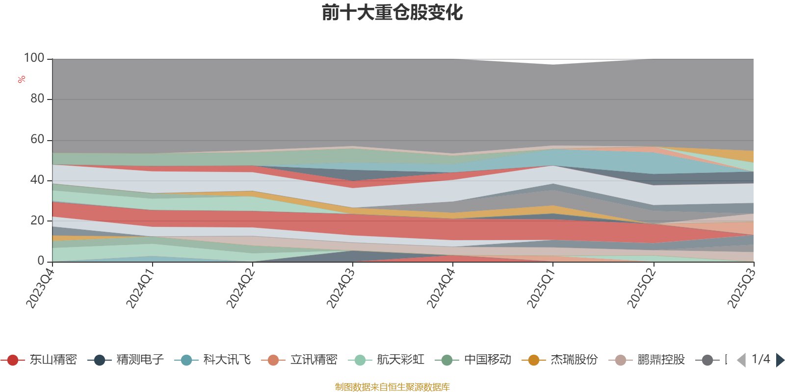 该基金持股集中度较高。截至2025年三季度末,基金十大重仓股分别是东阳光、寒武纪、科沃斯、衢州发展、中芯国际、鹏鼎控股、腾讯控股、工业富联、耐世特、国恩股份。