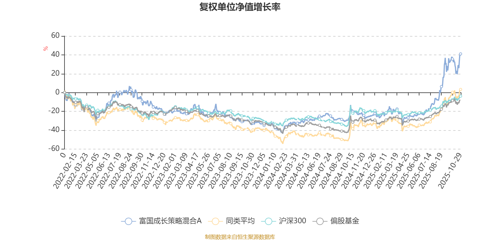 截至10月29日,富国成长策略混合A近三个月复权单位净值增长率为50.26%,位于同类可比基金38/229;近半年复权单位净值增长率为89.15%,位于同类可比基金37/229;近一年复权单位净值增长率为81.37%,位于同类可比基金40/213;近三年复权单位净值增长率为63.51%,位于同类可比基金59/158。