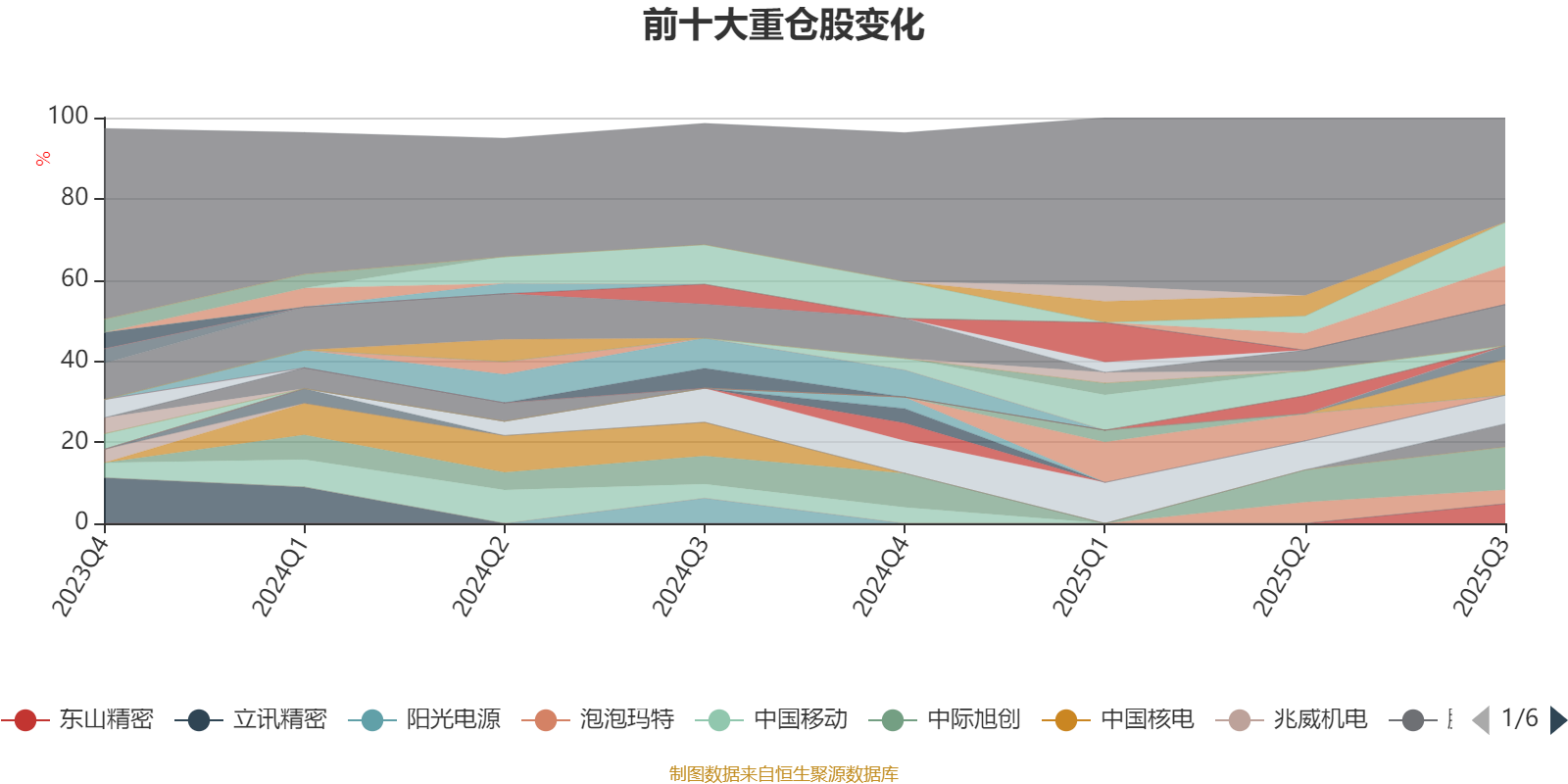 该基金持股集中度较高。截至2025年三季度末,基金十大重仓股分别是新易盛、中际旭创、沪电股份、天孚通信、深南电路、腾讯控股、鹏鼎控股、东山精密、泡泡玛特、寒武纪。
