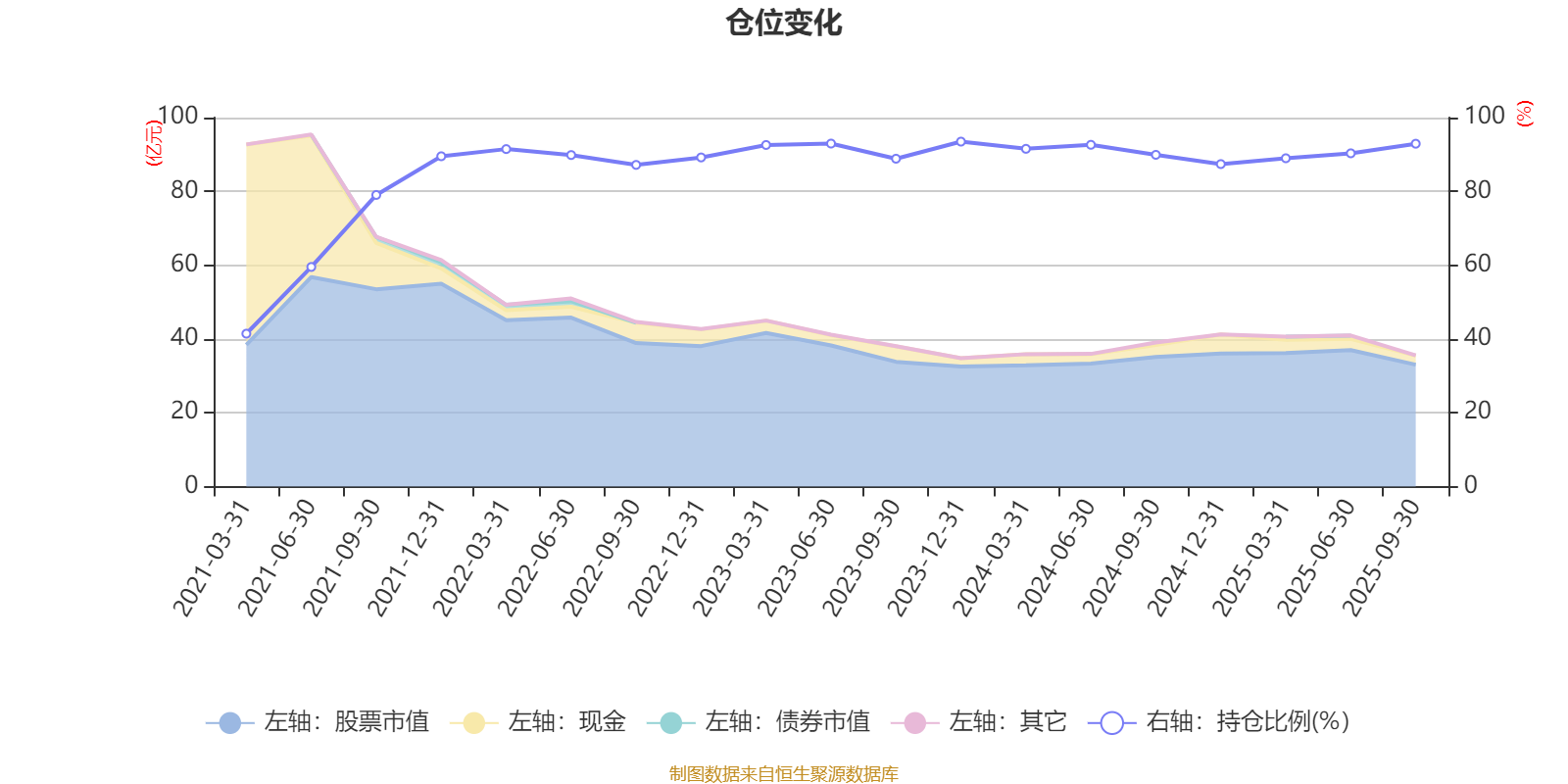 据定期报告数据统计,近三年平均股票仓位为90.9%,同类平均为86.15%。2023年末基金达到93.49%的最高仓位,2021年一季度末最低,为41.44%。