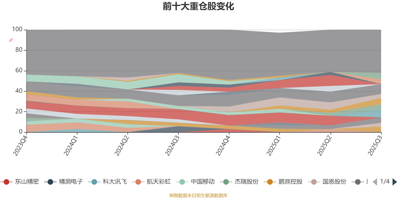 该基金持股集中度较高。截至2025年三季度末,基金十大重仓股分别是东阳光、寒武纪、衢州发展、中芯国际、鹏鼎控股、腾讯控股、耐世特、工业富联、联创光电、国恩股份。