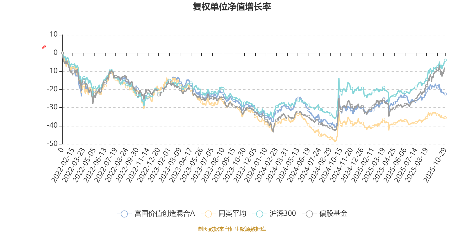 截至10月29日,富国价值创造混合A近三个月复权单位净值增长率为1.20%,位于同类可比基金46/85;近半年复权单位净值增长率为5.92%,位于同类可比基金37/85;近一年复权单位净值增长率为11.15%,位于同类可比基金30/82;近三年复权单位净值增长率为9.25%,位于同类可比基金24/74。