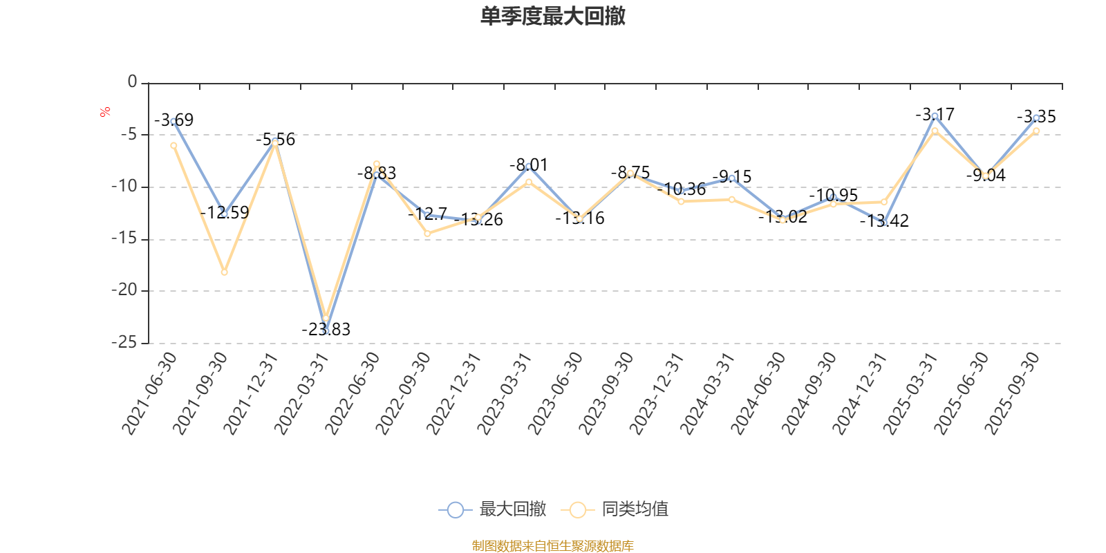 截至10月29日,基金近三年最大回撤为31.94%,同类可比基金排名17/74。单季度最大回撤出现在2022年一季度,为23.83%。