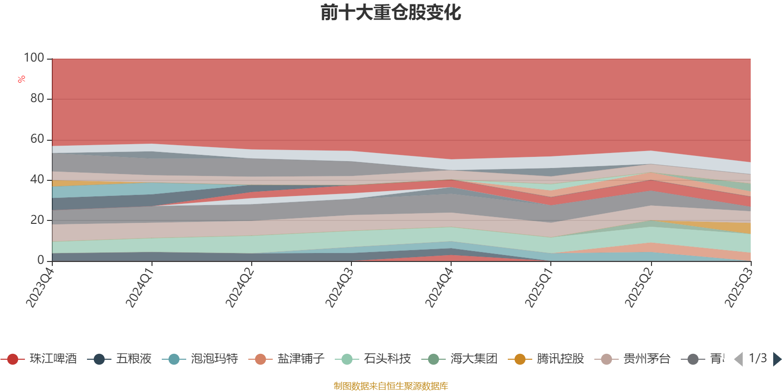 截至2025年三季度末,基金十大重仓股分别是石头科技、惠泰医疗、贵州茅台、腾讯控股、继峰股份、新产业、盐津铺子、阿里巴巴-W、丸美生物、青岛啤酒。