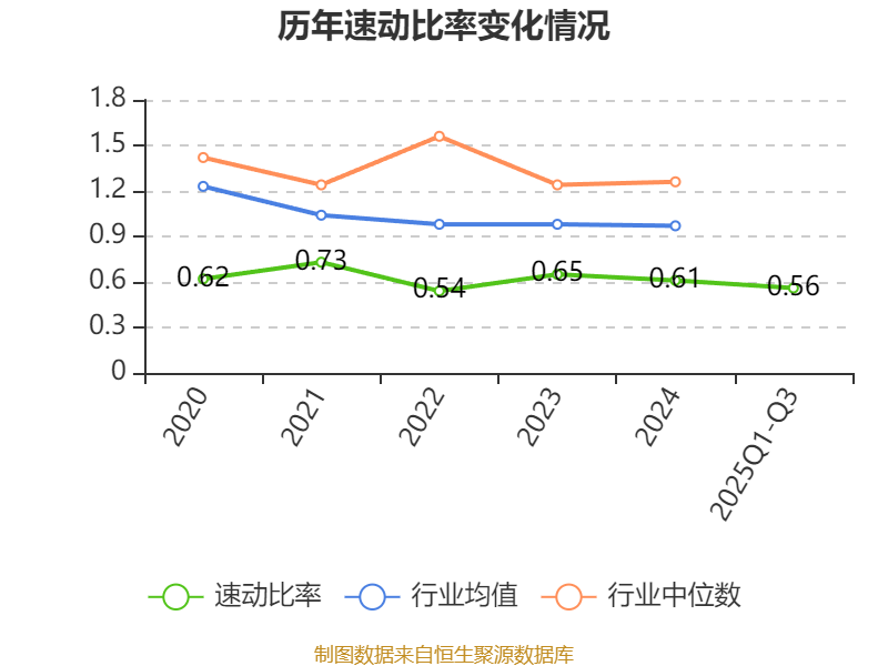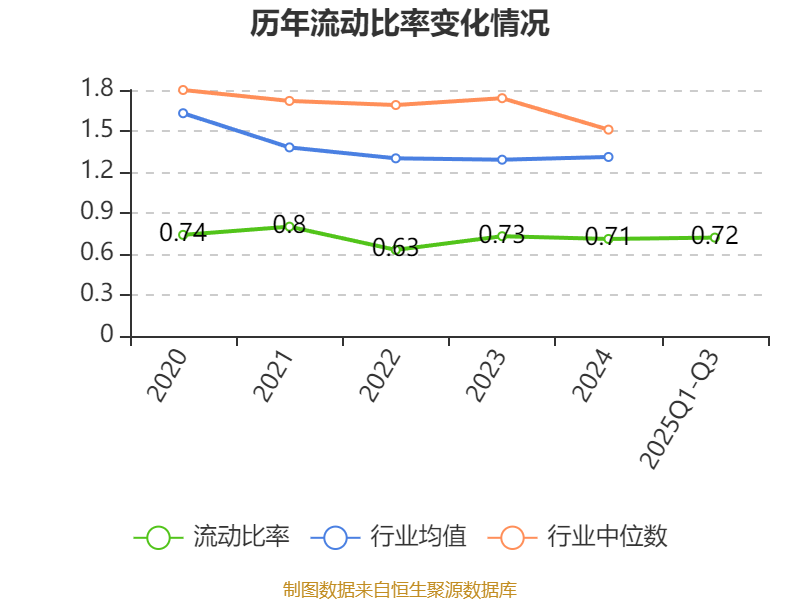 2025年前三季度,公司流动比率为0.72,速动比率为0.56。