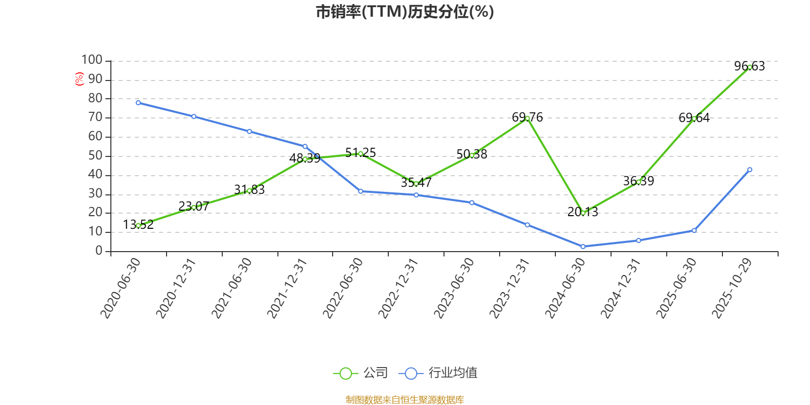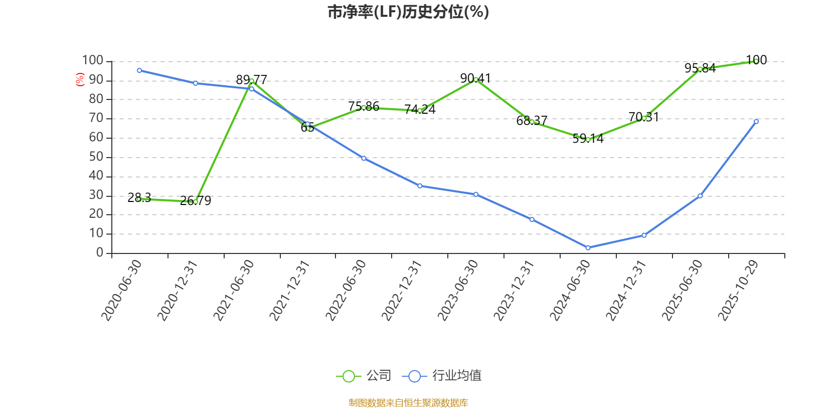 以10月29日收盘价计算,杭州高新目前市盈率(TTM)约为-131.62倍,市净率(LF)约63.51倍,市销率(TTM)约7.3倍。