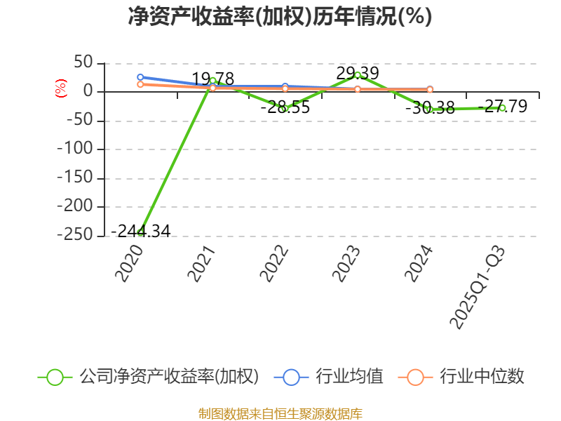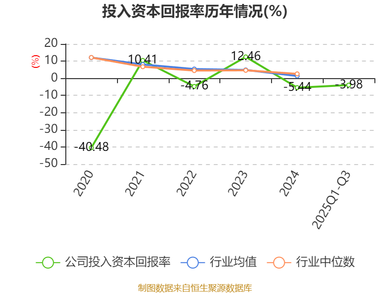 盈利能力方面, 2025年前三季度公司加权平均净资产收益率为-27.79%,同比下降8.64个百分点。公司2025年前三季度投入资本回报率为-3.98%,较上年同期下降0.6个百分点。