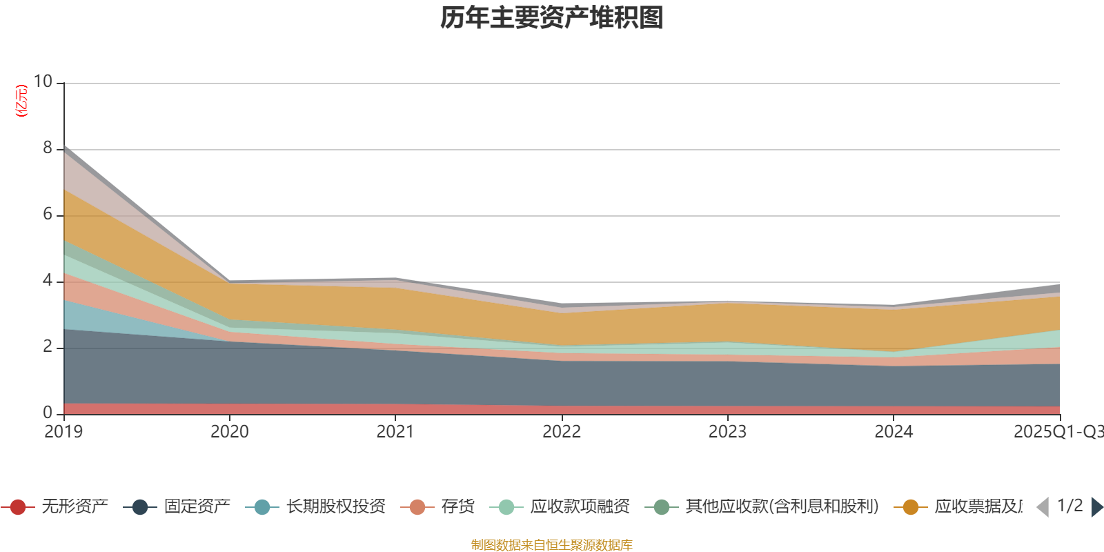 资产重大变化方面,截至2025年三季度末,公司应收票据及应收账款较上年末减少20.95%,占公司总资产比重下降12.95个百分点;应收款项融资较上年末增加211.65%,占公司总资产比重上升8.14个百分点;存货较上年末增加93.69%,占公司总资产比重上升5.03个百分点;固定资产较上年末增加5.76%,占公司总资产比重下降4.1个百分点。