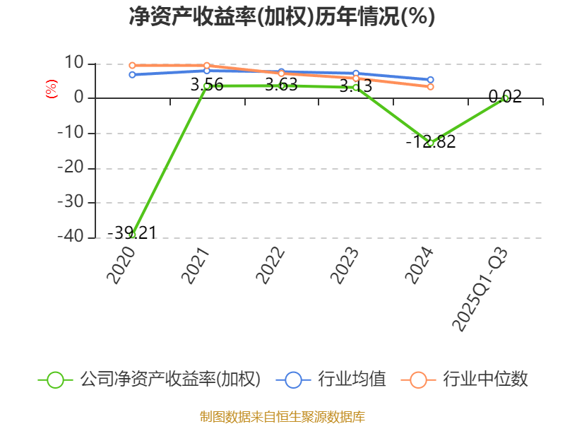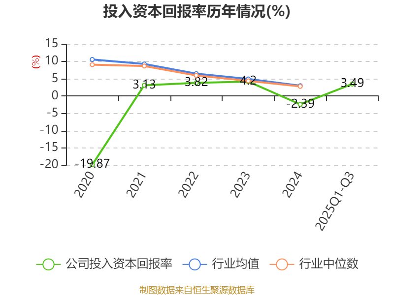 盈利能力方面, 2025年前三季度公司加权平均净资产收益率为0.02%,同比下降2.39个百分点。公司2025年前三季度投入资本回报率为3.49%,较上年同期下降0.21个百分点。