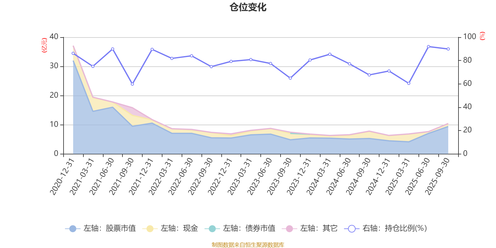 据定期报告数据统计,近三年平均股票仓位为77.22%,同类平均为85.99%。2025年上半年末基金达到91.96%的最高仓位,2021年三季度末最低,为59.81%。