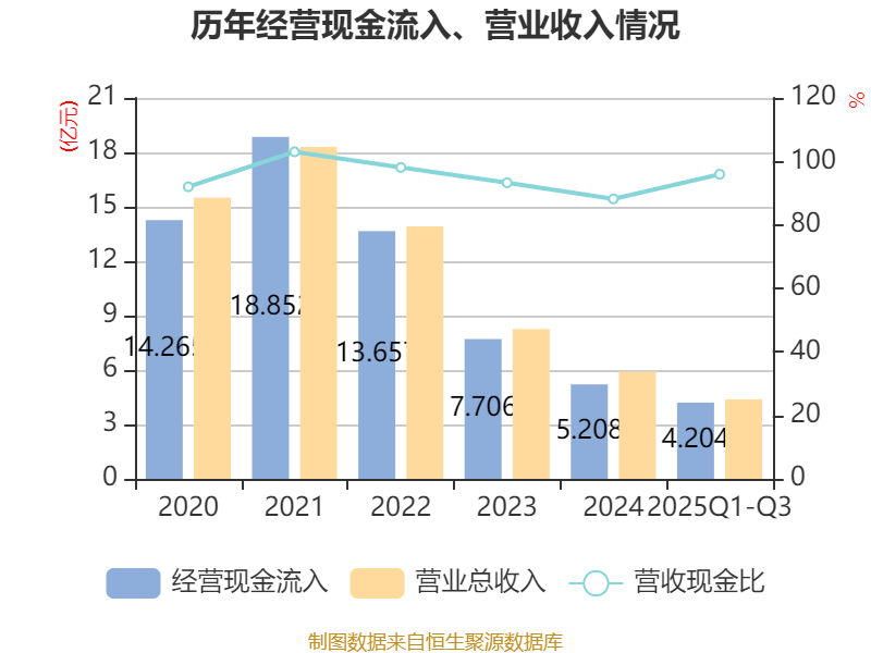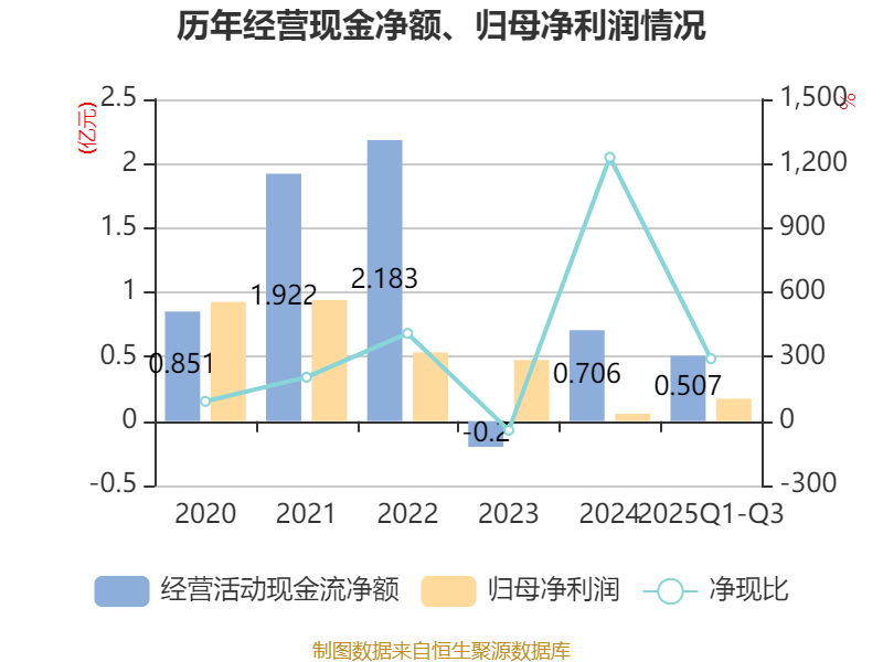 2025年前三季度,公司经营活动现金流净额为5070.26万元,同比下降44.3%;筹资活动现金流净额3792.04万元,同比增加1.41亿元;投资活动现金流净额-1.69亿元,上年同期为-1.95亿元。